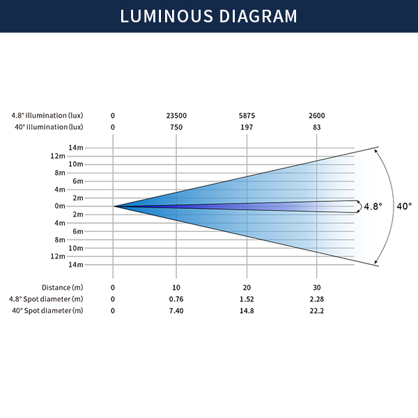 10milluminance(min/max):23500lux/0.76m,750 lux/7.4m;Inputvoltage range:AC110-240V-,50/60Hz;