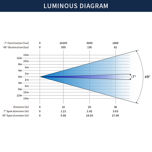 • Beam angel: 7°-49°;