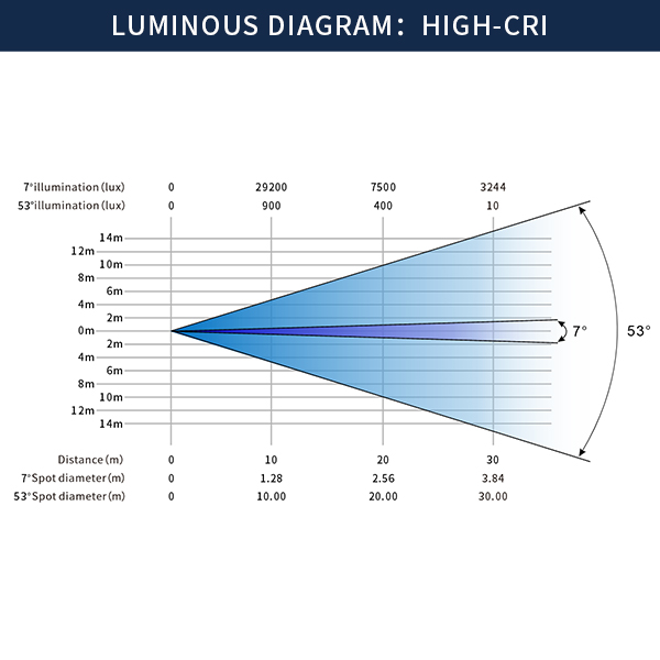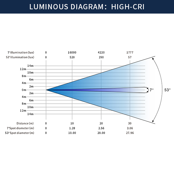 • 10m illuminance(min/max): 22800lux/1.02m,800lux/9.32m;